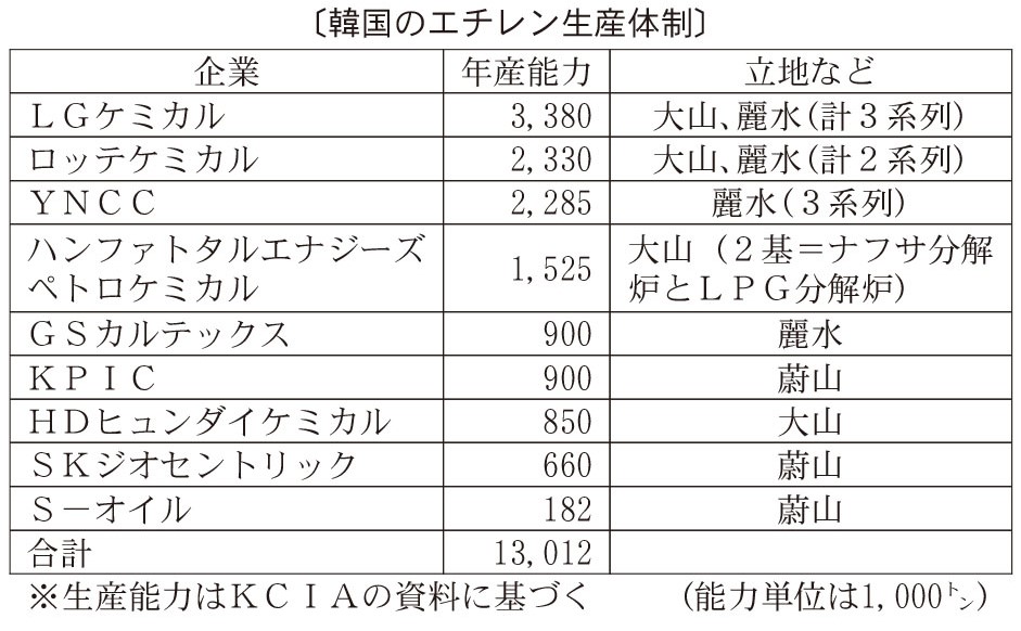 またサウジアラムコと同社傘下のS-オイルは来年9月、蔚山で原油処理・化学一貫プラント群の商業運転を開始する。エチレン能力は年180万トン。プロピレンを含めオレフィンを相当量外販するため、国内市場への影響は不可避だ。