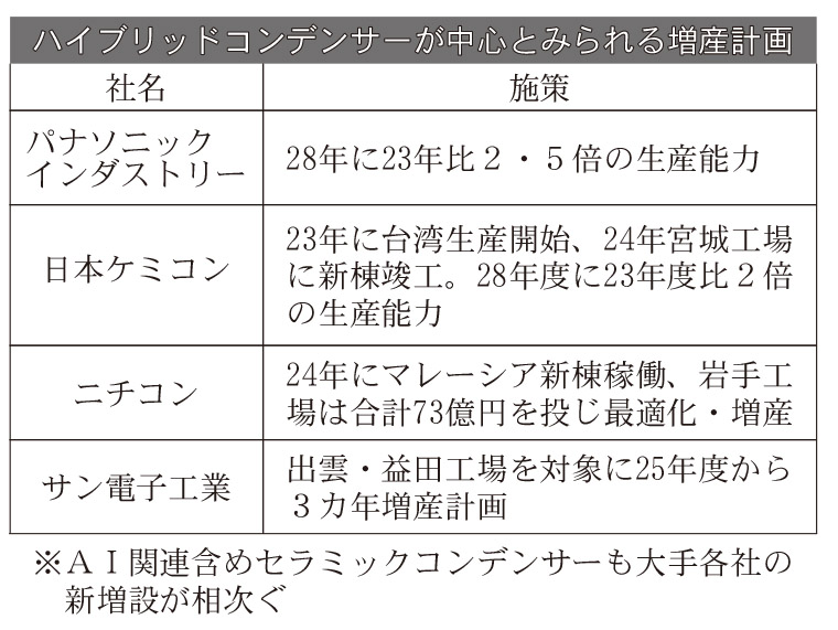 ハイブリッドコンデンサーを中心に増産・新機種投入が相次ぐ